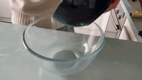 Sift flour on top of the mixture then add salt and fold it all together gently