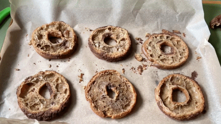 For the Paris-Brest, cut 8cm circles with a 3cm circle in the middle