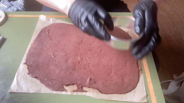 Smoosh inbetween two pieces of paper and roll to about 3-4mm thickness