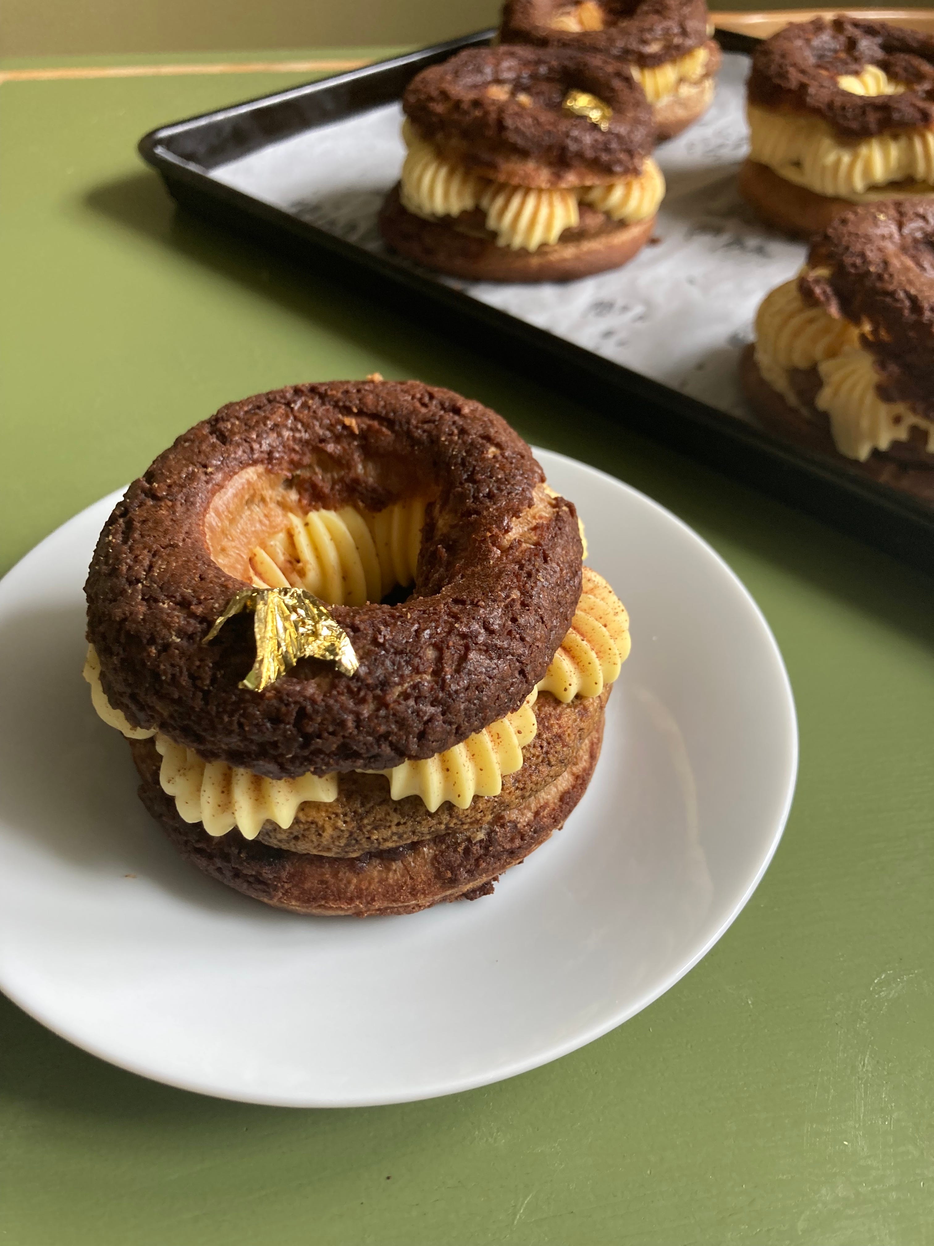 I know we talked about adapting choux before but let’s discuss again: I’m pretty sure you could use any flavoured liquid or powder - matcha would be great - and add it to the choux without damaging it’s structural integrity.