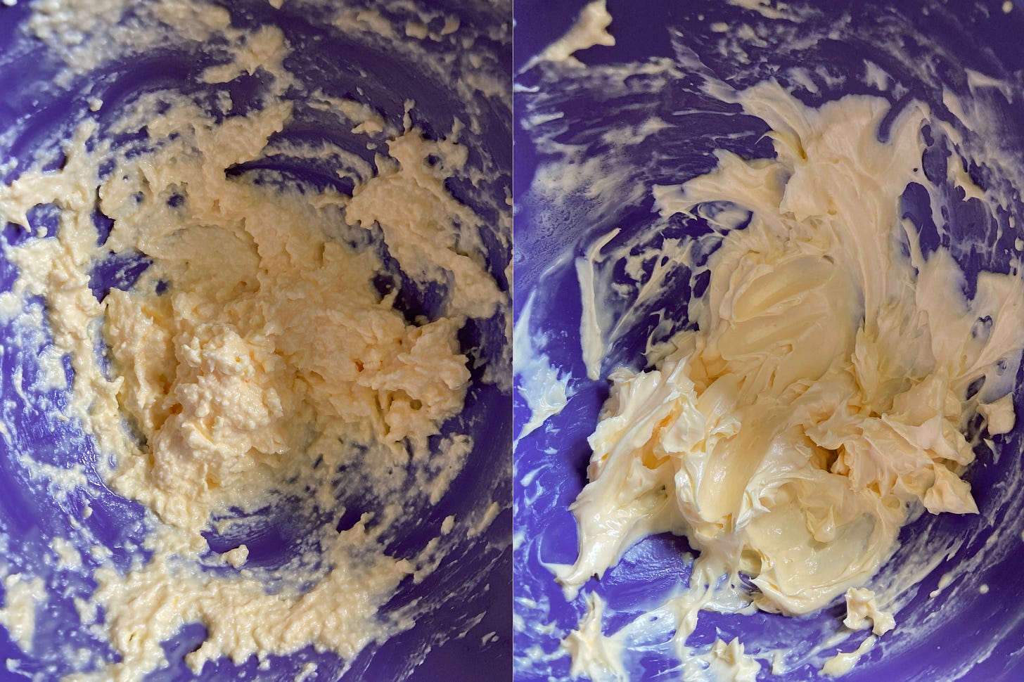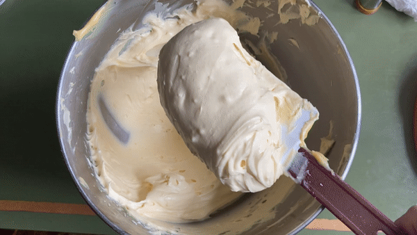 Now fold / mix the two together - it should make a very thick cream. You can also do this in your KitchenAid with the paddle attachments. This is how it should look once combined: