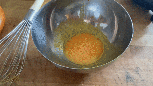Meanwhile, whisk together the whole egg, sugar and cornflour (I know it feels weird but just go with it)