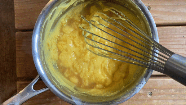 Although this feels a bit weird at first, you can totally use whole eggs for pastry cream. Can you see the difference?