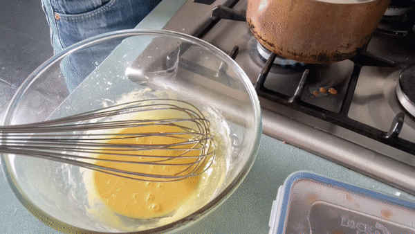 For today’s pastry cream, I adapted it slightly to be more tiramisu friendly. Firstly, I reduced the sugar ever so slightly. I also decided to use whole eggs, instead of just egg yolks! I mean, if whole eggs are good enough for tiramisu in general, then they’re more than good enough for me.