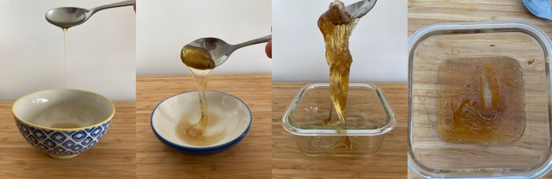 Pure water, as we know, cannot pass 100c as this is its boiling point. Once you mix in sugar, the boiling point changes and the temperature can climb way past this. The amount of water present will define how the sugar will behave in whatever recipe you’re using. This is why you can achieve different results by taking the sugar syrup to different temps. The more water you evaporate off, the thicker the syrup will become. You continue heating it and evaporating off the water until the concentration of water is so small (less than 1%) it becomes caramel, our fave!