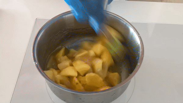 Heat over a medium heat until the peaches release all of their liquid and it is bubbling
