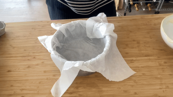 Pour into your tin and bake. You can trim the paper up at this stage if it seems excessive:
