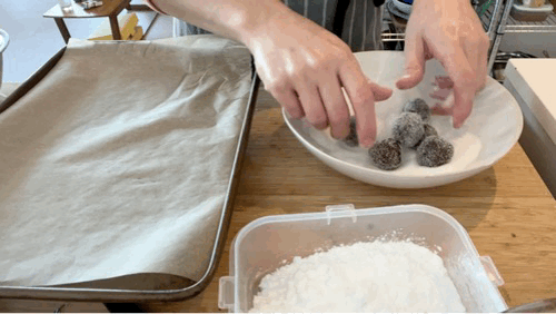 Chill dough properly but leave it for 10-15 mins at room temp before trying to shape or you will HURT YOUR HANDS. Owing to the high proportion of chocolate, this dough hardens a LOT in the fridge so it is a bit hard to work with