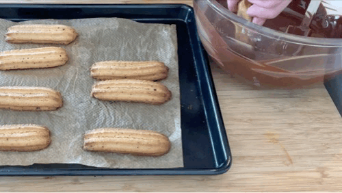 For jammy, pipe 4cm circles then a small amount of dough in the middle. With a wet finger, smoosh dough in the middle and spoon in a little jam (max 1 teaspoon)