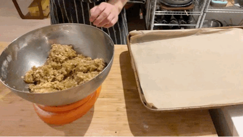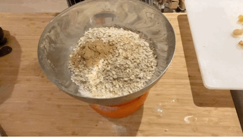 Mix together chopped crystallised ginger, plain flour, light brown sugar, oats, salt and ground ginger