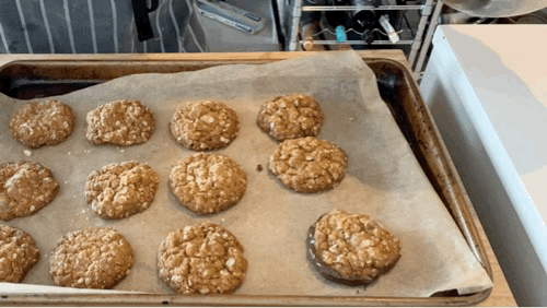 Sugar, as it cools, returns to its crystallised structure resulting in a crisp biscuit. Obviously you need to bake it long enough, too, if it’s snap you’re after. Instead of just adding more crystallised sugar, I took inspiration from crunchy anzac biscuits which have a much higher proportion of sugar and also use golden syrup which, when baked. Also, golden syrup and ginger, it just WORKS, right?
