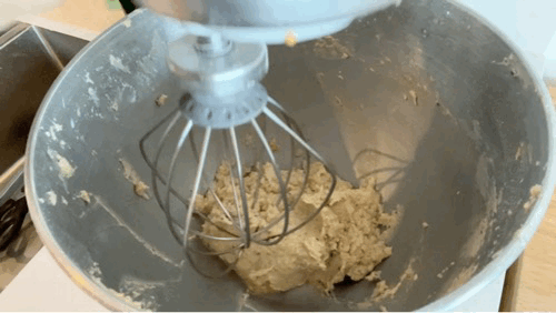 Mix the flour into the butter/egg mixture in three additions. You can do this by hand or with a paddle