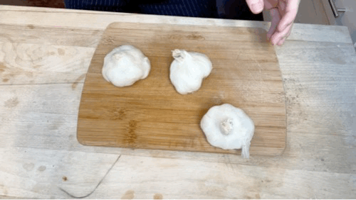 Slice off the top of the garlic, revealing the cloves