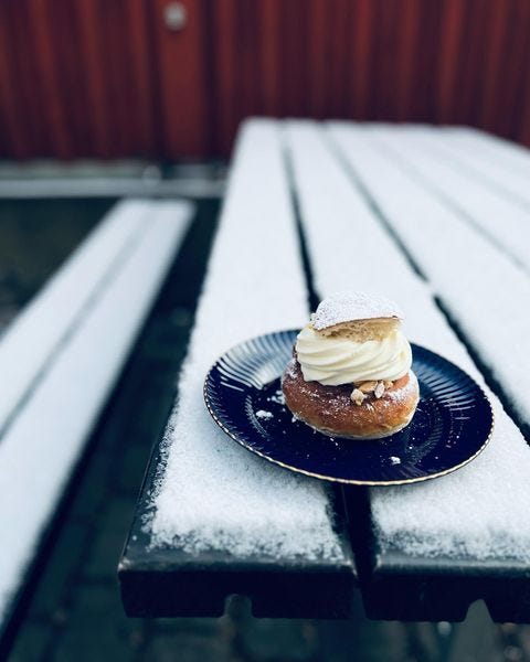 Csaba: So many bakeries start making semlor right after the new year, straight from the first week of January. It used to be the opposite - the tradition was to only eat on Fat Tuesday, “fettisdagen" and until Easter. At my bakery, we started on the 3rd week of January. We wanted to wait - other bakeries were putting their prices up and hyping everyone up! My bakery won the competition last year with a different taste and now with my new mandelmassa (almond paste) filling, we won this year’s competition too in Stockholm. (You can check out the article here)