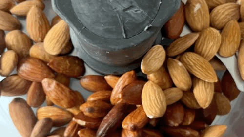 Dissolve salt in water completely. Add in almonds and leave for 30 minutes.