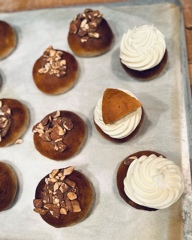 I first met Csaba at Little Bread Pedlar - we worked together back in 2016/17, and, having worked alongside him, I’m not at all surprised that the semla from his bakery regularly wins the title of the best in Stockholm! He really is such a talented baker. Csaba has generously lead the way for today’s newsletter and answered my questions about the famous buns and his process at Stora as well as a bit of the history (and scale) of the day!