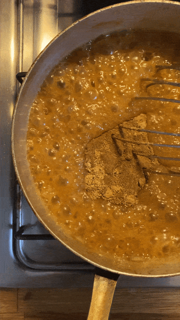 The answer? Yes it does. And it’s a marvel: by caramelising the sugar, deglazing with cream and THEN adding the raw spices into the caramel sauce. Once everything was in, I let it all bubble up together nicely which, on tasting, adds some much needed complexity. That being said, you could omit the spices completely (and I’ll definitely say that they are optional in this recipe) and be extremely happy.