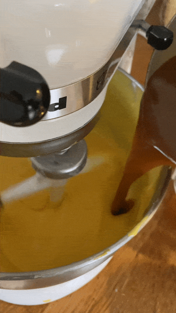 Slowly add in your caramel sauce mixture and mix until homogeneous