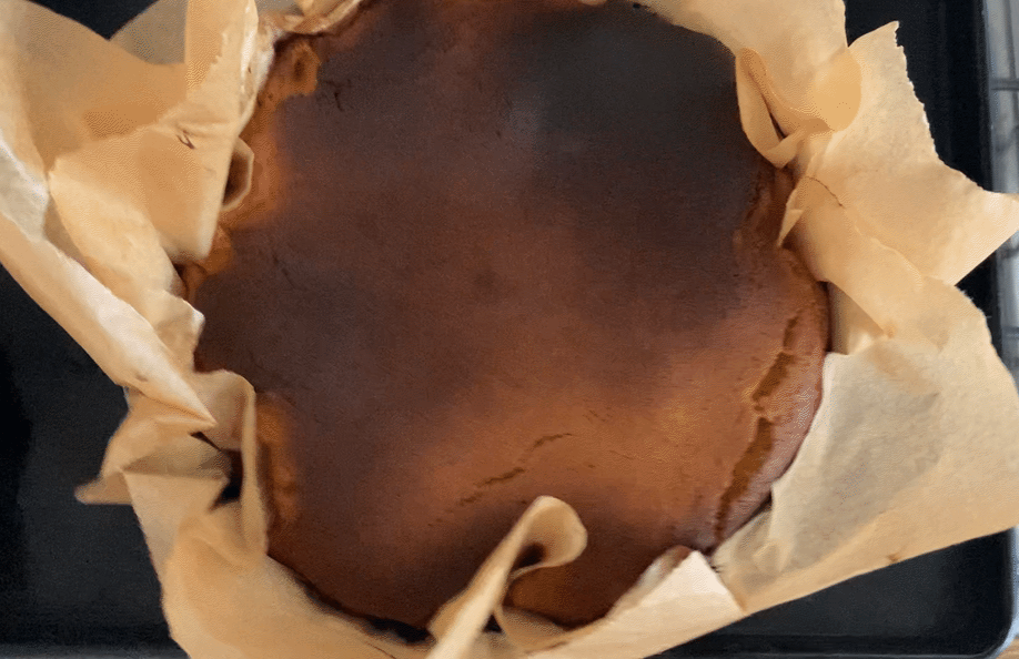 Keep a careful eye on your basque during the baking – it may need to be turned to brown evenly and if it isn’t taking on colour then take matters into your own hands. I like to monitor it carefully and often hike the temperature up to max for the last 5-10 mins of cooking and see if you can get it to brown that way.