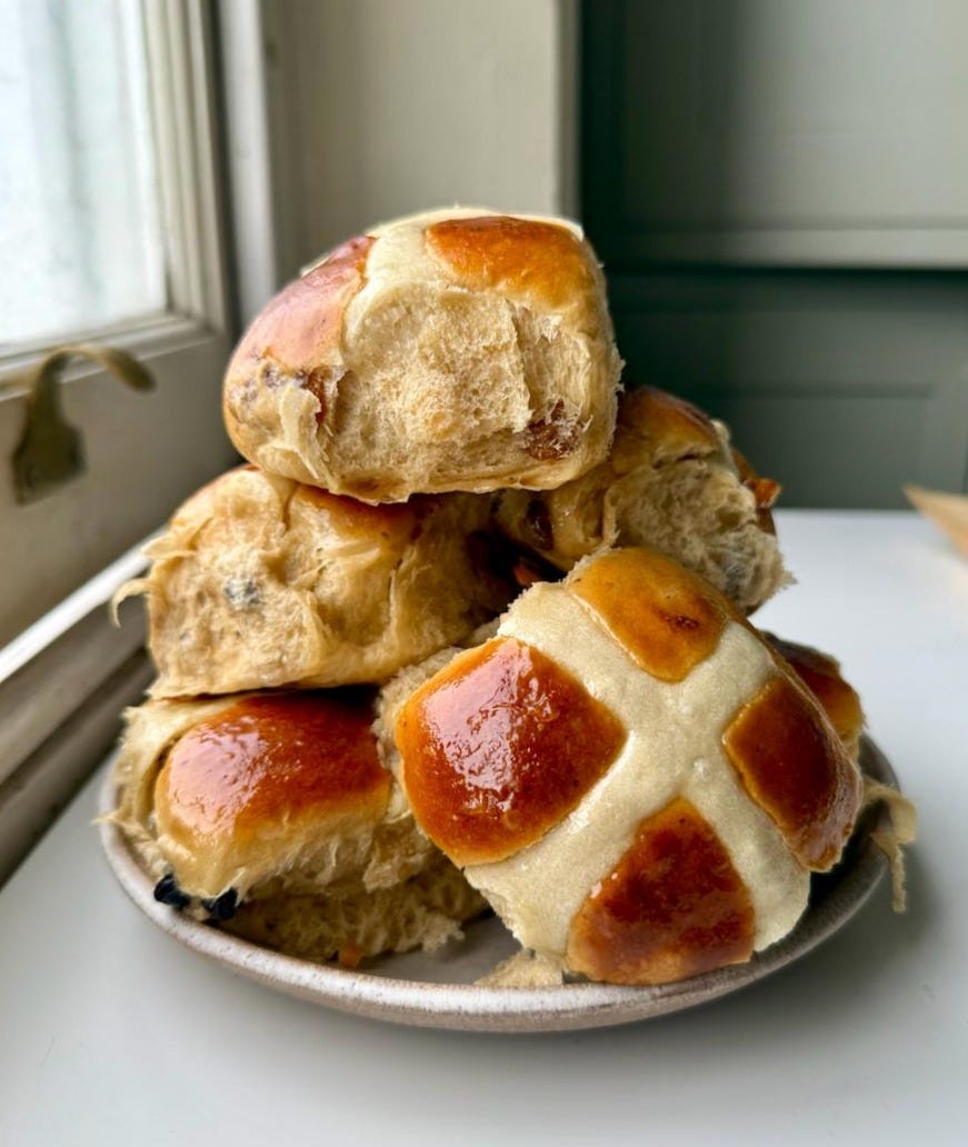 A resplendent member of Hot Cross Bun extended family. To be honest, there’s nothing I love more than an HXB adjacent bake and I’ve got a LOT of them. This might just be the crown jewel though! Click here for the recipe.