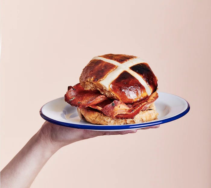 If you don’t fancy making your own, Le Swine, purveyors of Britain’s best bacon butty, are back with the Hot Cross Bacon Bun kit this year! The bun is made with my recipe and each kit contains everything you need to make the dreamiest breakfast:
