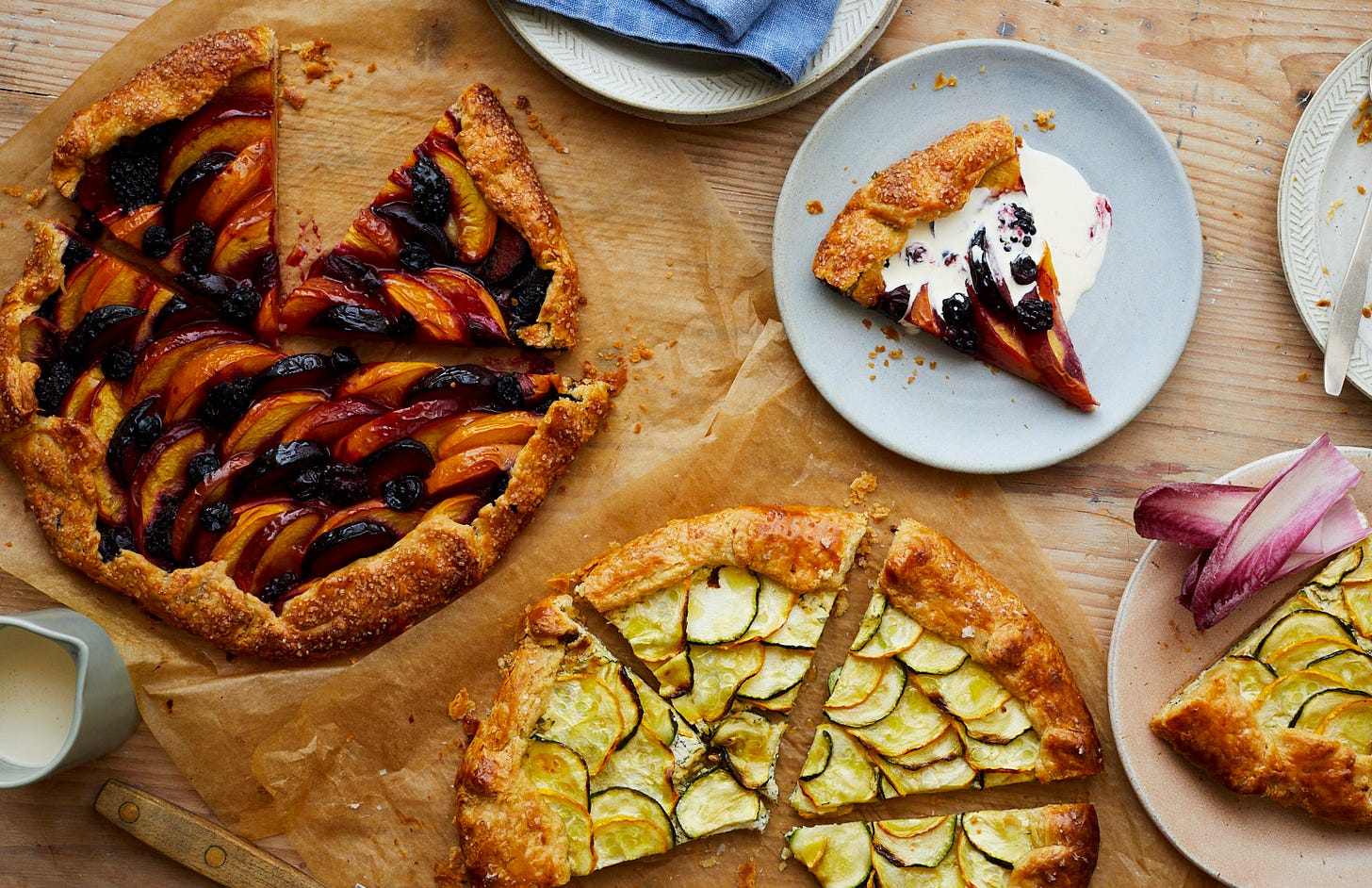 Flick to page 68 in my book SIFT and you’ll find a recipe for ‘ANY GALETTE’ - that’s because you really can use this pastry as a canvas for all your fruit dreams. With a few tweaks, you can make a gorgeous galette no matter what you’ve picked up at your local greengrocers. In the book, I suggested a lovely plum, peach and blueberry number, alongside a courgette, ricotta and herby one. But you do you! Everything you need to know is in the book. Click here to get a copy.