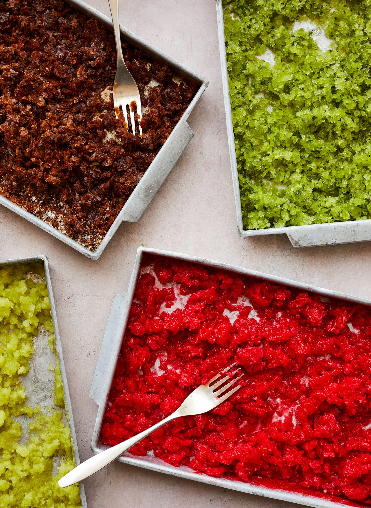 Ok, fine. Maybe there IS something (in my opinion) better than sorbet in the summer. GRANITA. The prep time is minimal and you can be enjoying an icy treat within hours. Over on KP+, I’m sharing my granita calculator so you can make your own recipes, along with formulations for jasmine and lychee granita, green tea coconut water granita and pistachio granita.