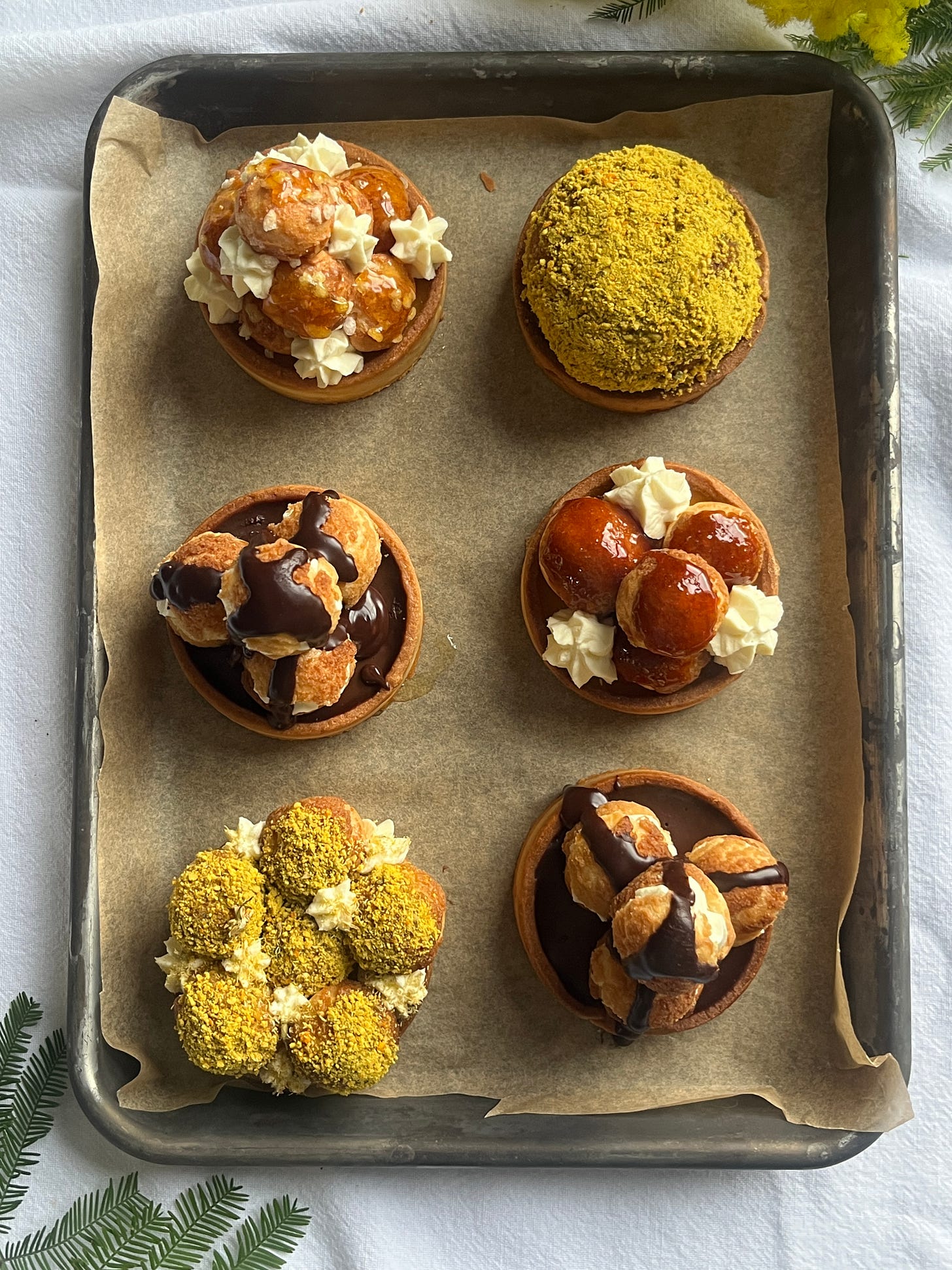 It’s been a moment since I’ve made a really fancy looking tart and I’m SO excited about this one. Plus look at all the other tarts you can make with the choux-on-tart concept - I fell in love with these croquembouche and profiterole tarts. Let your imagination run free!