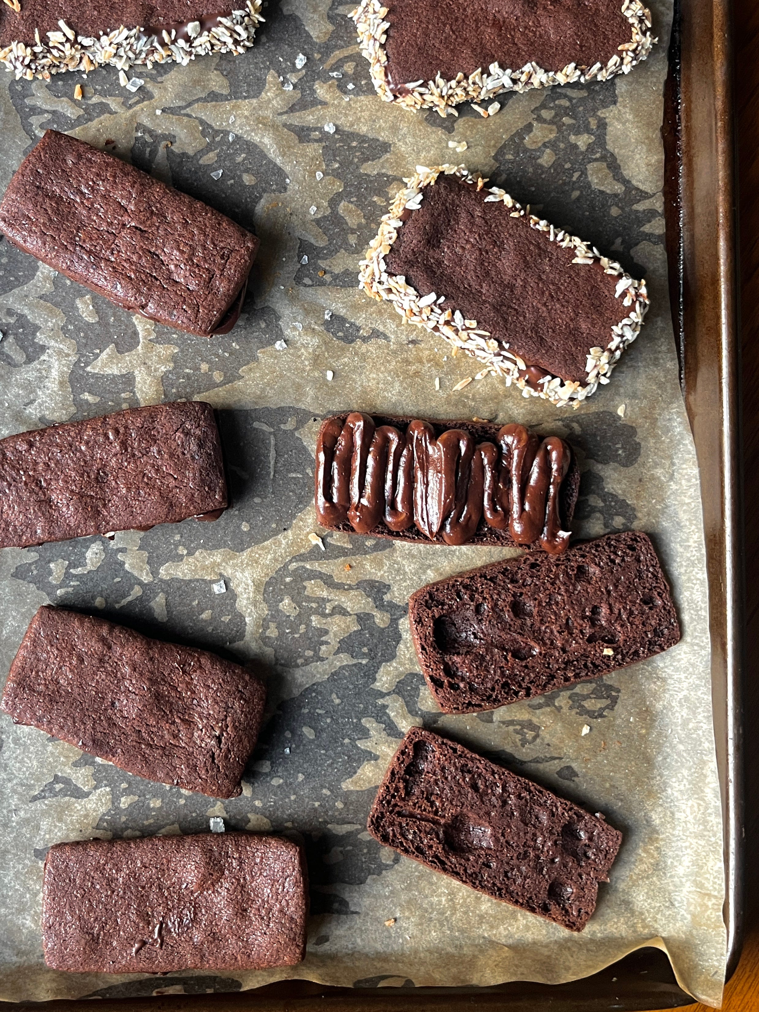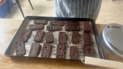 Preheat the oven to 160c fan. Slice chilled dough into thin squares and dip each edge in demerara sugar, pressing firmly to help it adhere, and place on a parchment-lined baking tray. Bake until deeply browned, about 12-14 minutes depending on your oven. You might even need to take these to 16 min - just watch them!