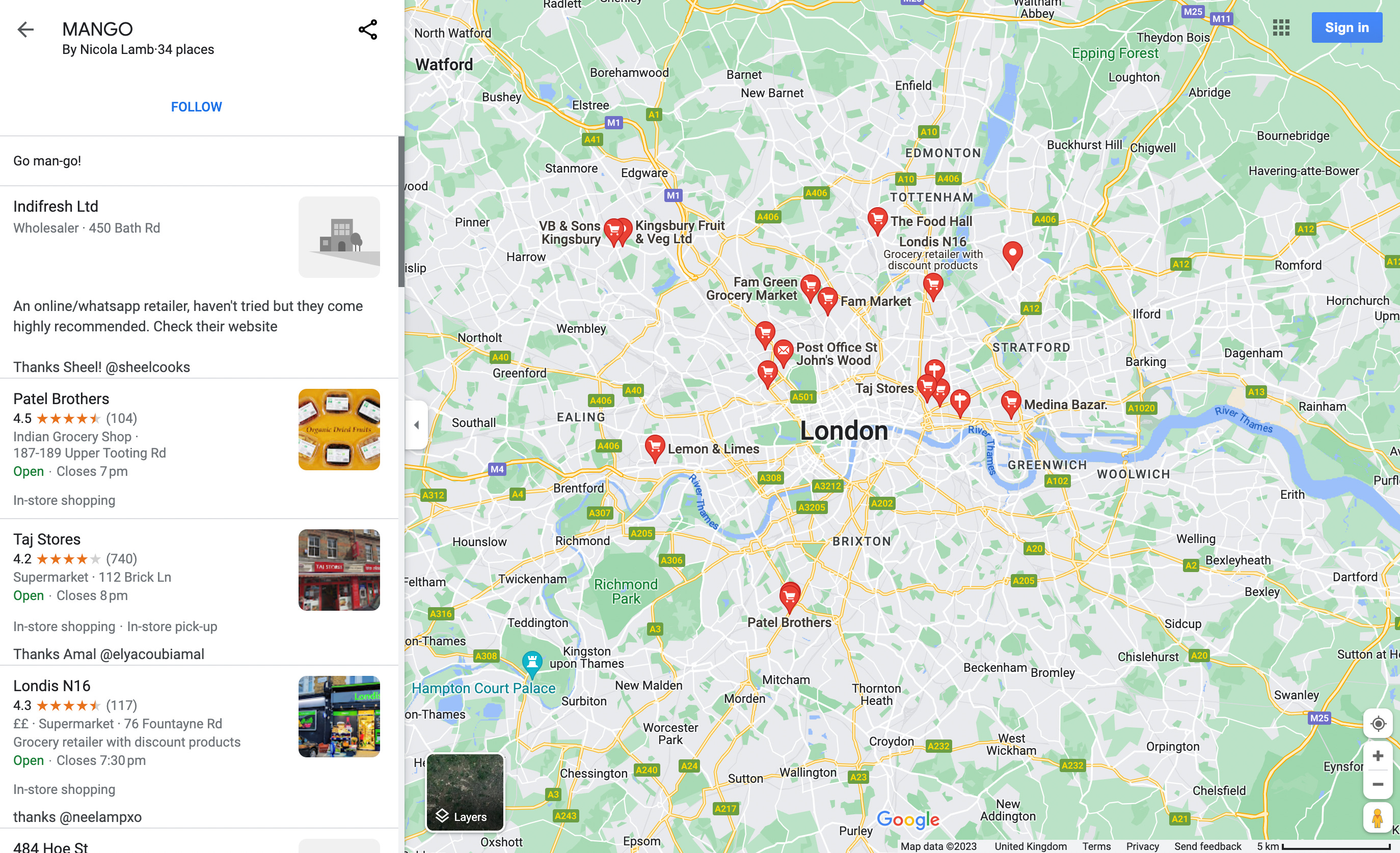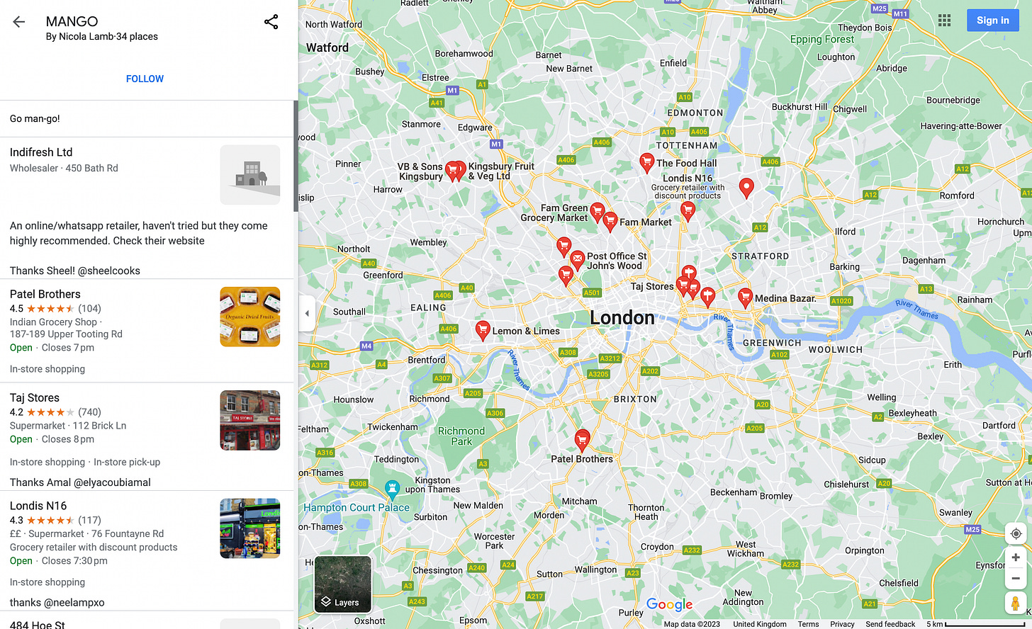 In preparation for next weekend’s mango madness, I figured it would be a good idea to share my mango map. I’m afraid it’s very london centric, but please do continue sending me mango tips so I can keep the map updated. Click here to see it.
