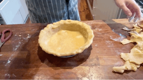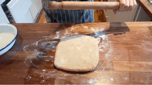 To roll it out, flour your surface enough to stop any sticking, then roll the pie dough out to 3mm. If the dough is warming up too much and it doesn’t feel cute… just put it in the fridge and return to it in 10 minutes.