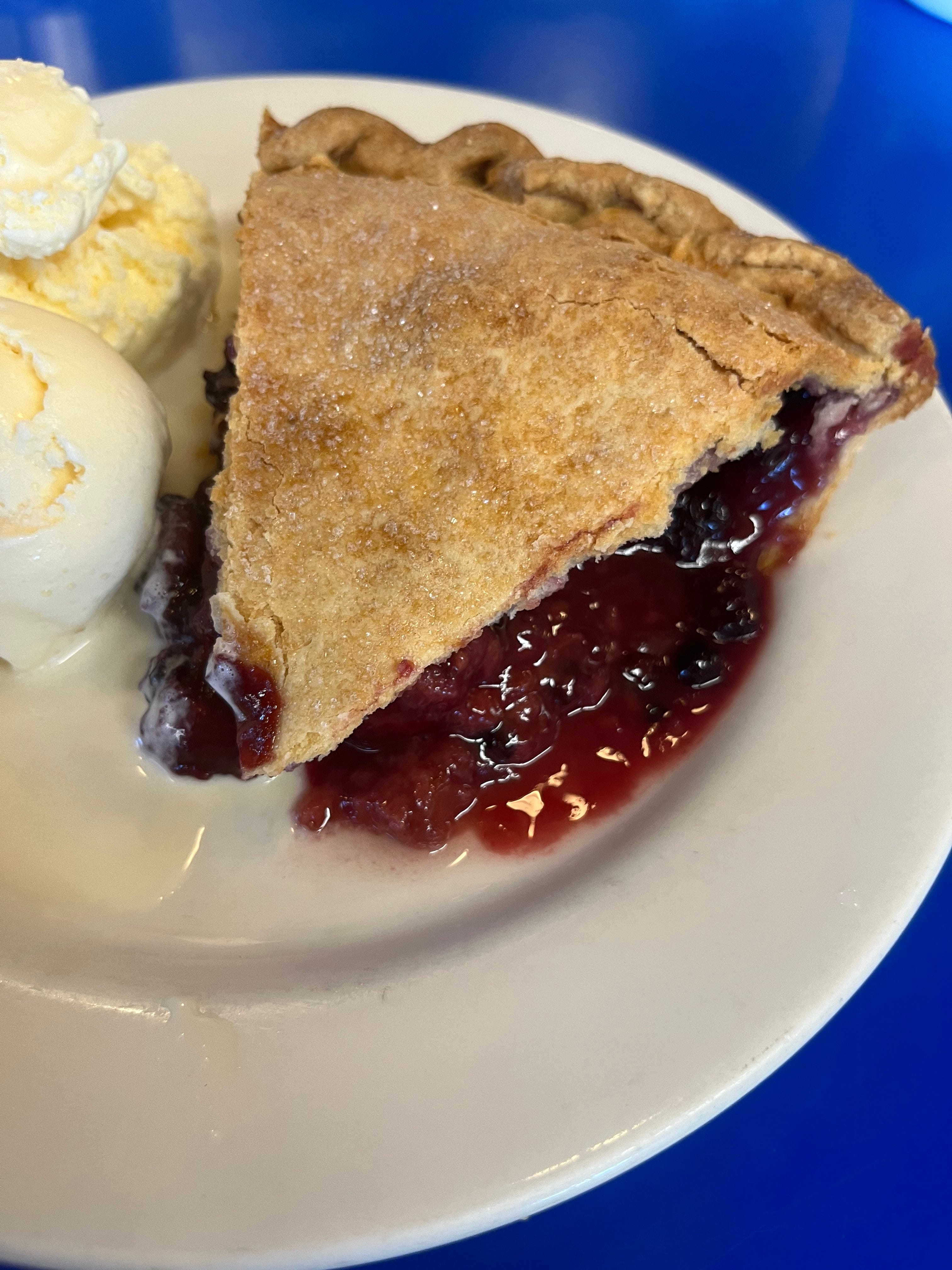 Betty’s crust is more tender and less flaky - though still very rich - than the crust I’m used to. They still use lard and have egg in their dough and, I think, a little more sugar. I loved this - it was a much more shortbread-like texture. We got four slices - two to eat, two to go - including their signature Great Lakes crunch, which features five fruits representing the five great lakes of the US and a double-crusted bumbleberry, which is just a cute name for mixed berry. Both were outstanding, the filling set ‘just right’ and not at all bouncy or overly sweet, with a freshness that spoke to Betty’s decade-long commitment to pie.
