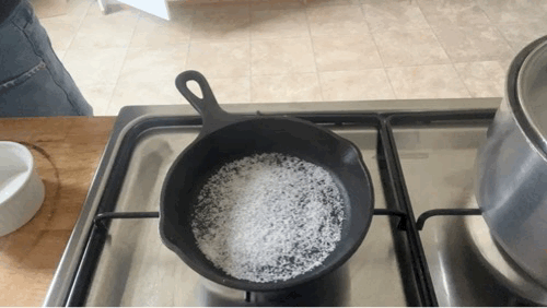 Place a 6-inch cast iron pan on medium heat. Add caster sugar bit by bit to make a dry caramel. Avoid going too dark at this stage - you want pale golden. You can add the butter when there’s still a few grains of sugar undissolved. Add butter along with the sprigs of rosemary and a pinch of flaky salt. You can also add chopped walnuts here, if desired