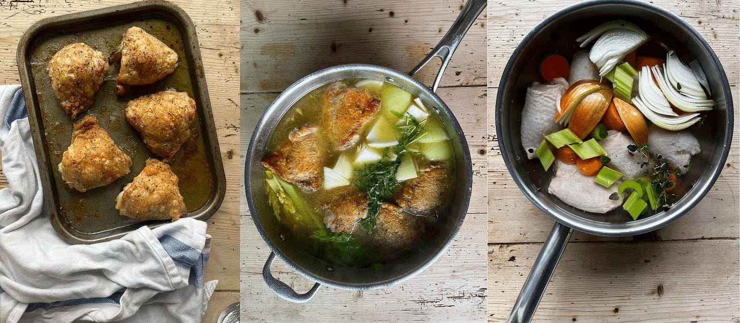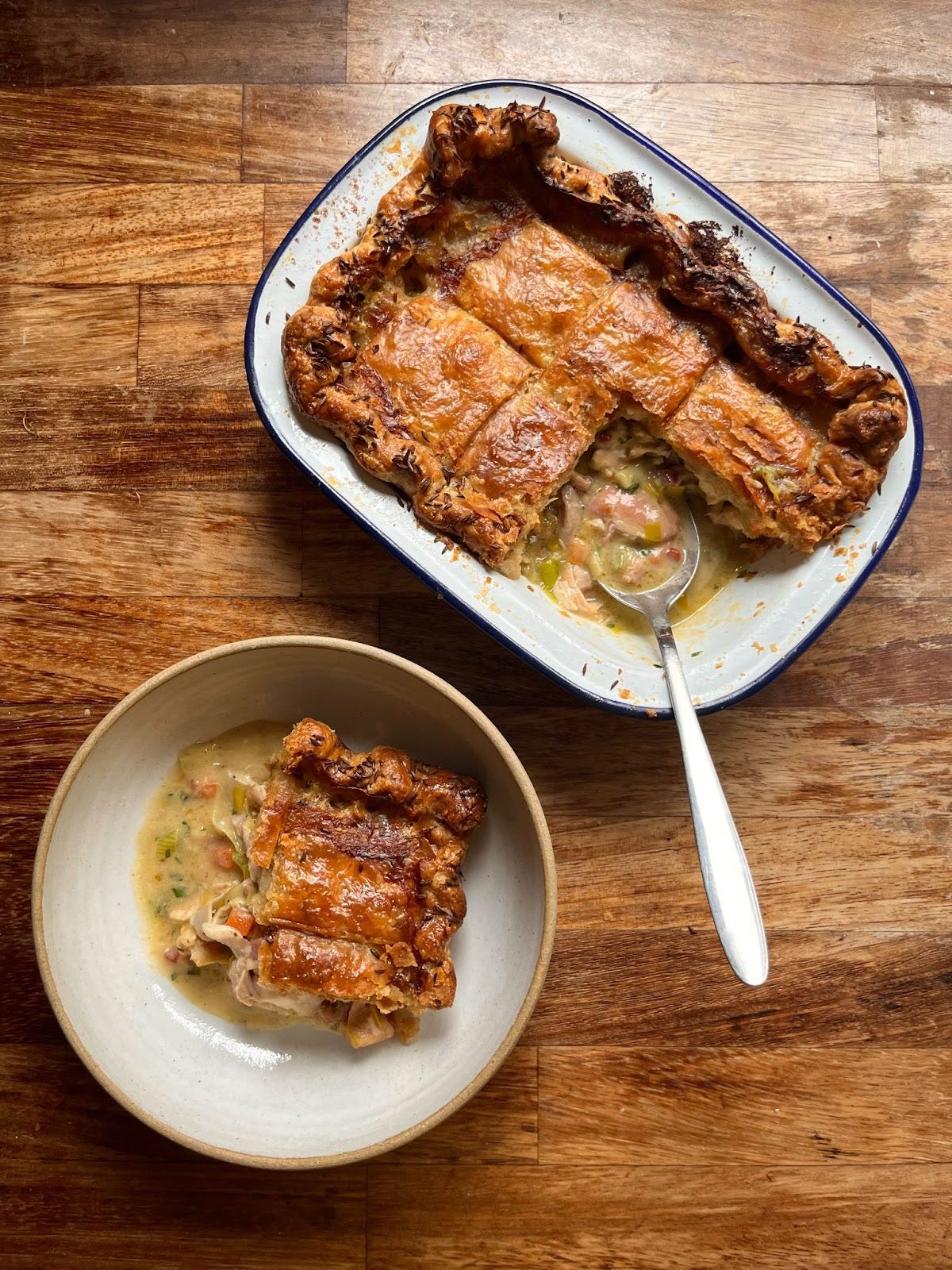 We’ll kick off this week’s edition with a conversation between Rosie and I as we figured out how to approach the testing for this week’s classic chicken pie. At its heart this newsletter is always about recipe development and the thought process that goes into creating a final recipe so I hope this chat gives you insight into how we brought this recipe to reality: