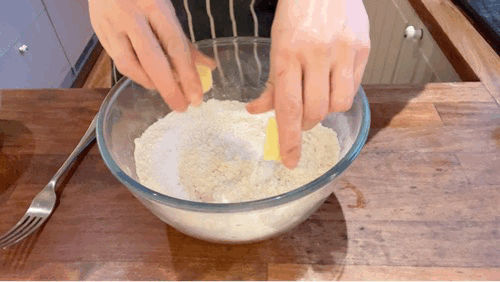 Don’t want to use suet / can’t find it? Rub half of your butter to fine crumbs then leave the other half as large pieces. This way you get a good mixture of dense buttery/fatty bits and larger, flakier bits!