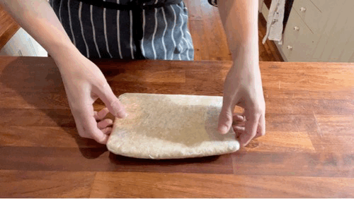 Roll out the pie dough to 3mm thick and about 10inch x 16inch. Cut in half