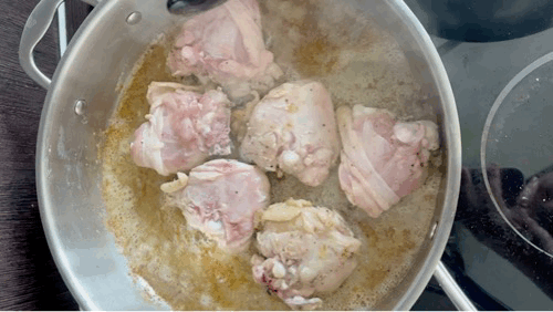 I generally prefer cooking meat on the bone where possible, so I tested whole bone-in thighs. They (unlike most parts of the chicken) are marbled with fat, have nice density and are more flavourful – plus the bone conducts heat in a gentle way, generally achieving a juicier and more flavourful result. I also tried pre-chopped, boneless thigh - this has an increased surface area for browning but risks becoming tough from being smaller and off the bone.